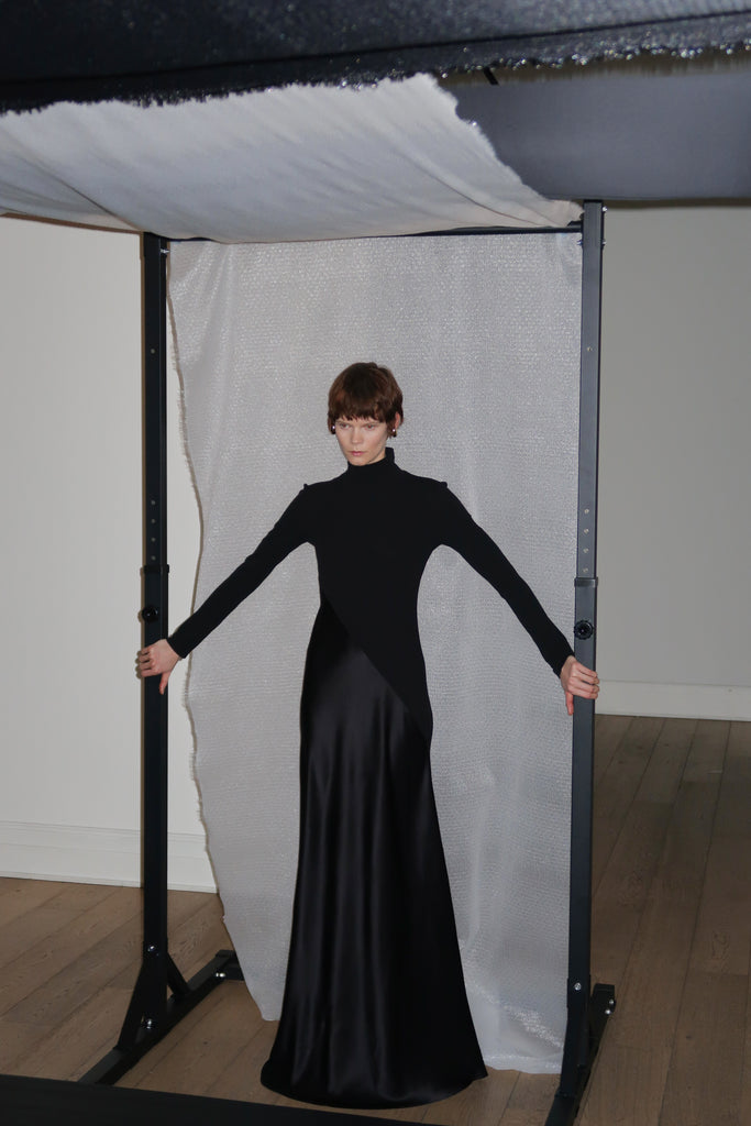 BIAS TURTLENECK COMBO MAXI DRESS