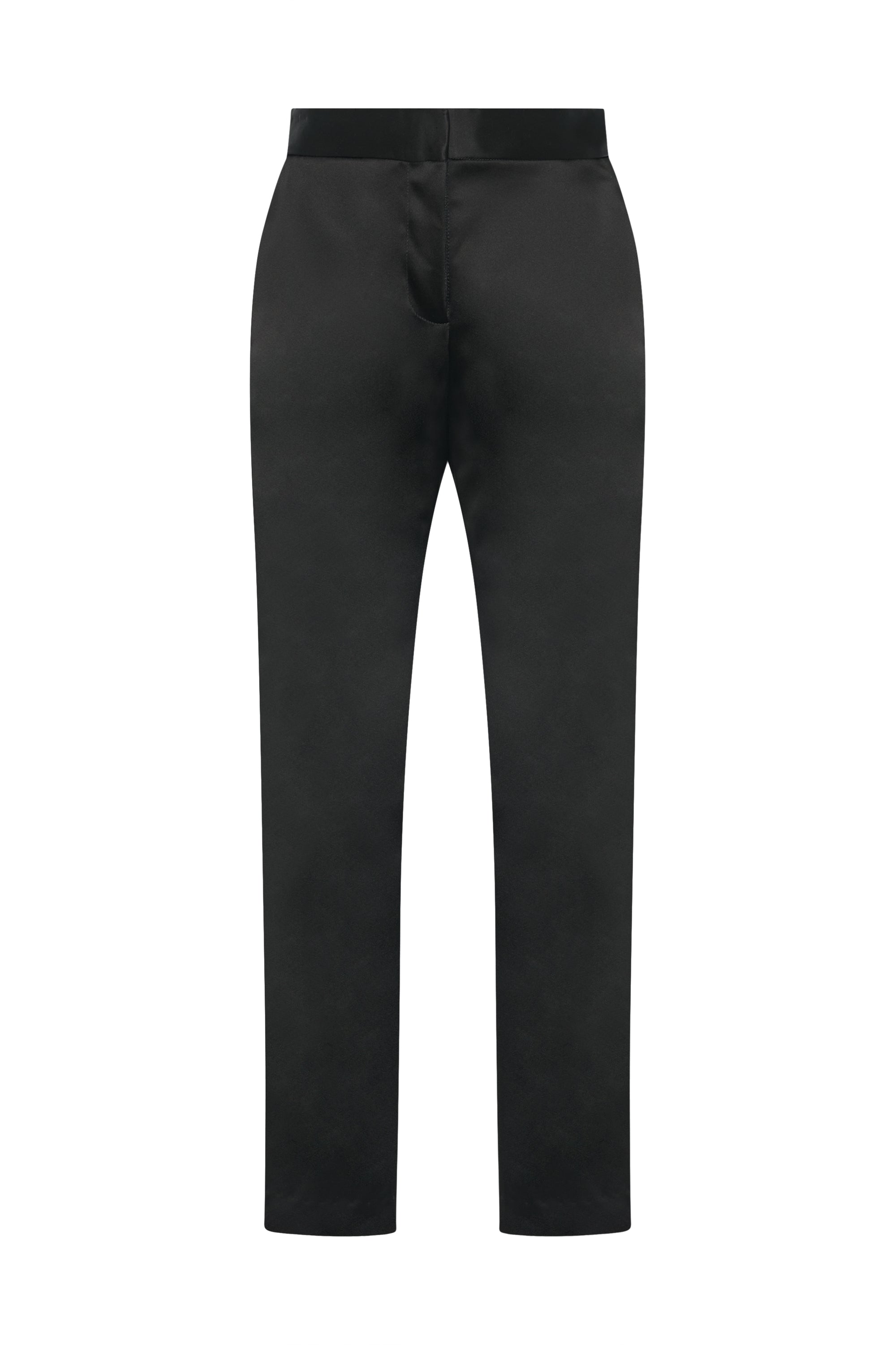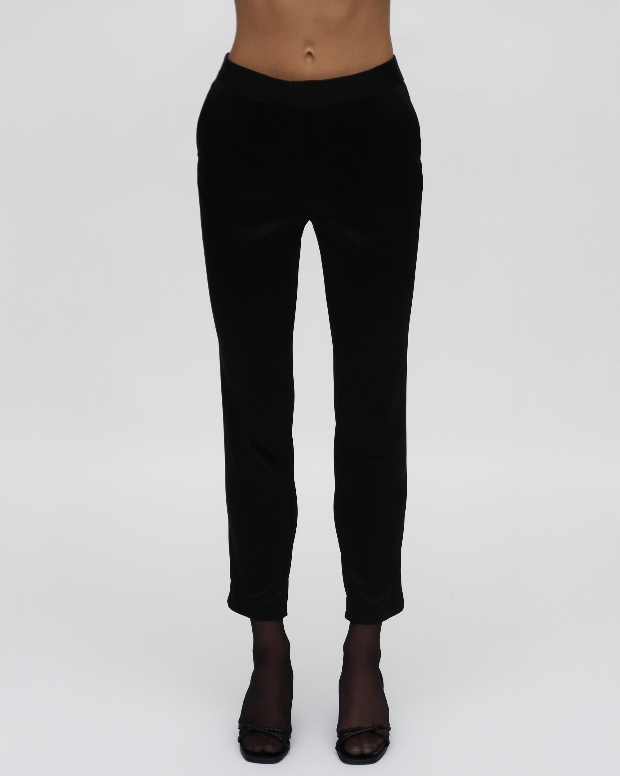 A sleek foundational piece with a polished finish. Cut in lustrous Italian Stretch Duchess Satin, this cropped skinny pant is designed to sculpt the silhouette with clean, modern precision. The ankle-grazing length highlights footwear, while the rich satin texture lends subtle sophistication for both day and evening styling.